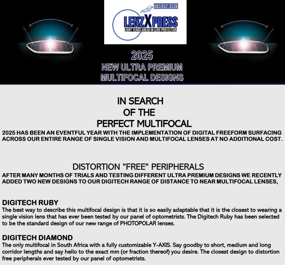 DESIGNED FOR ALL TYPES OF MULTIFOCAL NEEDS INCLUDING OFFICE AND MAY ALSO BE TAILORED TO MEET ANY PATIENT'S SPECIFIC REQUIREMENT